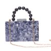 El clutch Perla Zafiro es una verdadera joya diseñada para las amantes de la moda que buscan un toque único en sus accesorios. Con su impactante acabado marmoleado en un tono azul zafiro, este clutch evoca sofisticación y exclusividad, convirtiéndose en el centro de atención en cualquier evento.